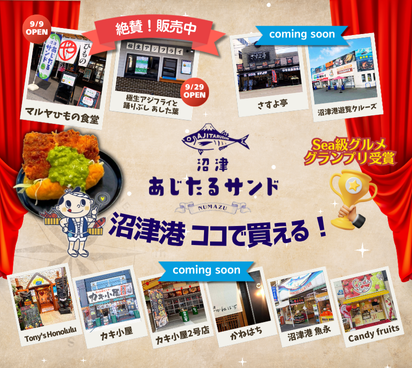 「ぬまづみなと商店街」オリジナルの保冷剤(2025年登場!)、ぬまづみなとマップがオンラインショップでゲットできます!沼津アジひもの、お茶、うなぎ、酒のつまみが揃いました。